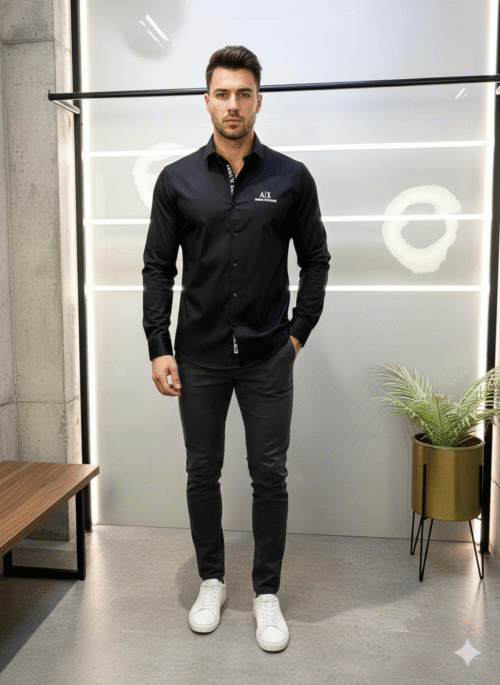 Armani Exchange (A|X) Men’s Classic Black Logo Shirt – Premium Slim Fit Casual Wear