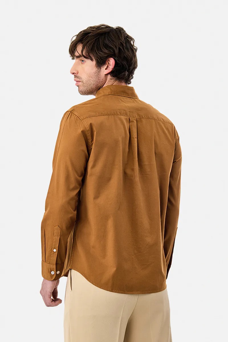 The rich solid brown colour adds a warm, elegant, and sophisticated appeal, suitable for both casual and semi-formal occasions. Designed with a classic button-down collar, full sleeves with roll-up option, and a smooth front placket, this shirt delivers a refined yet relaxed look. The slim-fit silhouette enhances your physique while ensuring maximum comfort and ease of movement.