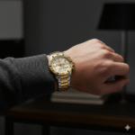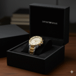 The watch is protected by scratch-resistant glass that helps maintain its polished look even with regular use. Its rotating bezel with clearly marked numerals adds a sporty yet elegant character, making it both functional and visually appealing. Designed with water resistance, the watch can handle minor splashes and everyday moisture, making it practical for daily activities.