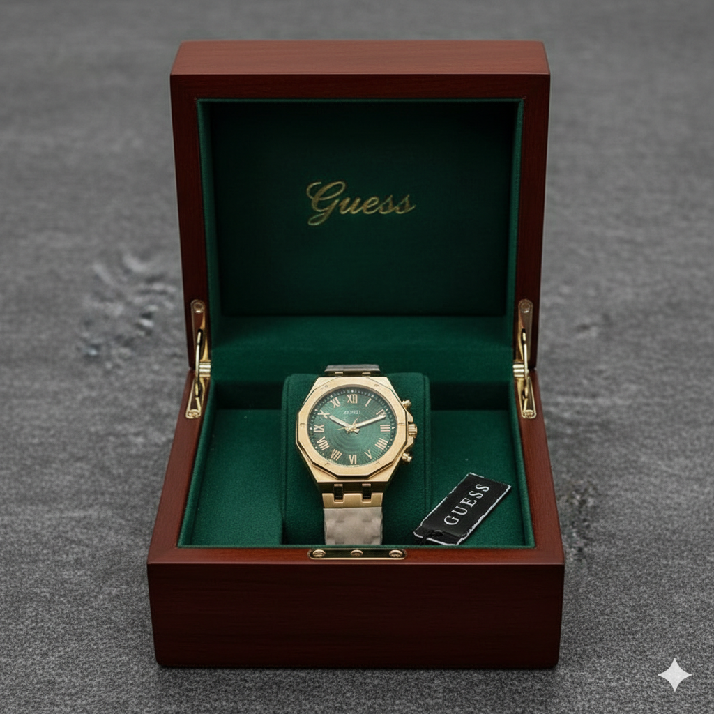 GUESS Gold & Green Dial Luxury Watch – Royal Elegance Edition