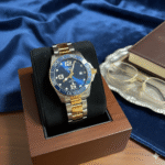 This premium men’s wristwatch is a perfect blend of classic elegance and modern sporty design. Featuring a striking blue dial, the watch instantly captures attention with its bold contrast and refined detailing. The dial is designed with large, easy-to-read Arabic numerals and luminous hands, ensuring excellent visibility in both daylight and low-light conditions.