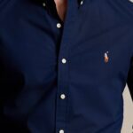 The rich navy blue color adds a refined touch, while the subtle embroidered detail on the chest enhances its premium appeal without being overpowering. Featuring a classic button-down front, neatly stitched seams, and a tailored fit, this shirt effortlessly balances comfort and style.
