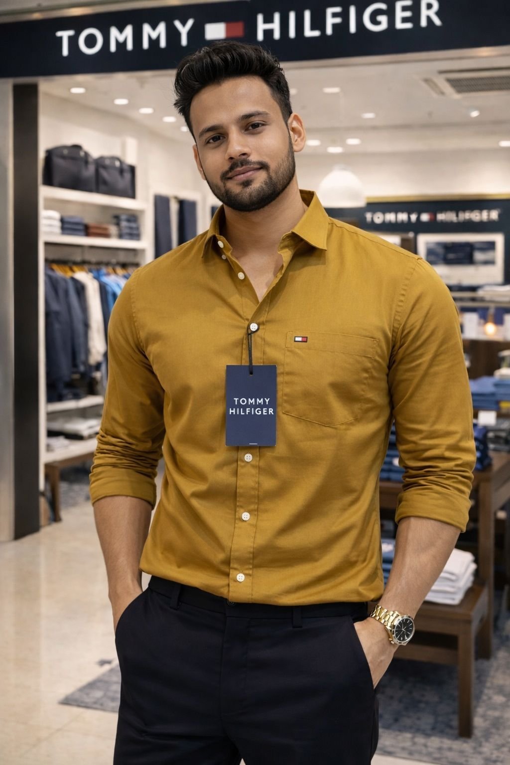 The rich Mustard Yellow shade adds depth and elegance, while the iconic Tommy Hilfiger flag logo gives it an unmistakable premium identity. Designed in a slim-fit silhouette, it enhances your body shape without compromising comfort.